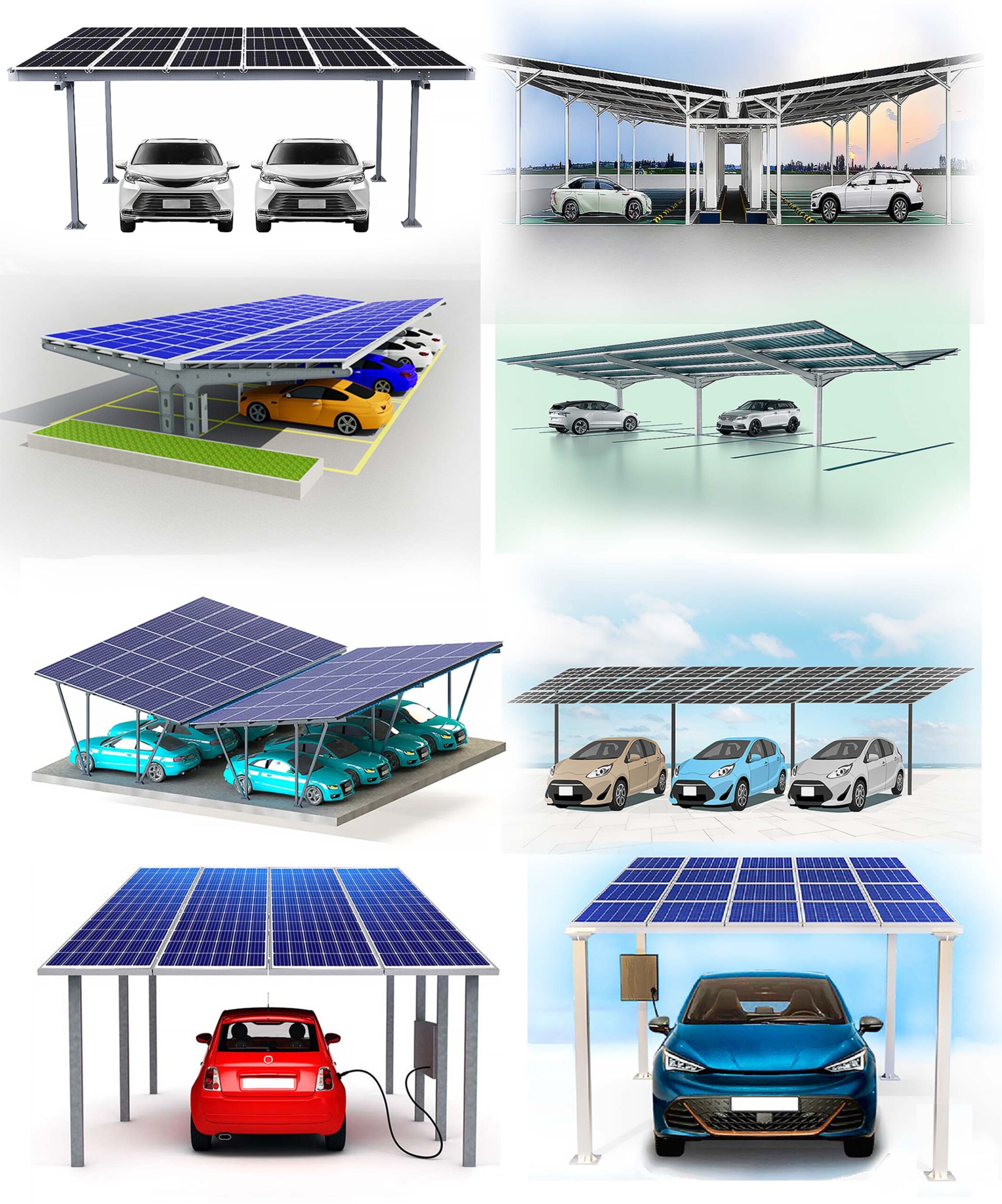 Parking lots, residential carports, commercial buildings, EV charging stations |