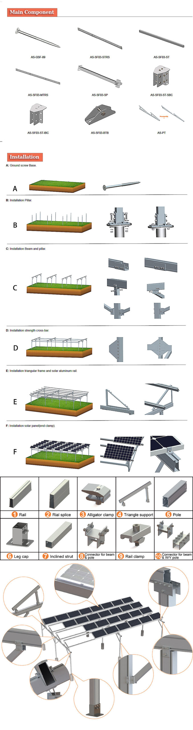 A farming mounting system provides structural support for various agricultural equipment and systems, particularly those related to solar power generation (Agri-PV) or other farm operations. These systems are designed to be durable, efficient, and adaptable to different terrains and weather conditions. They often incorporate features like corrosion resistance, adjustable tilt angles, and robust foundations (ground screws or concrete) to ensure stability and longevity.