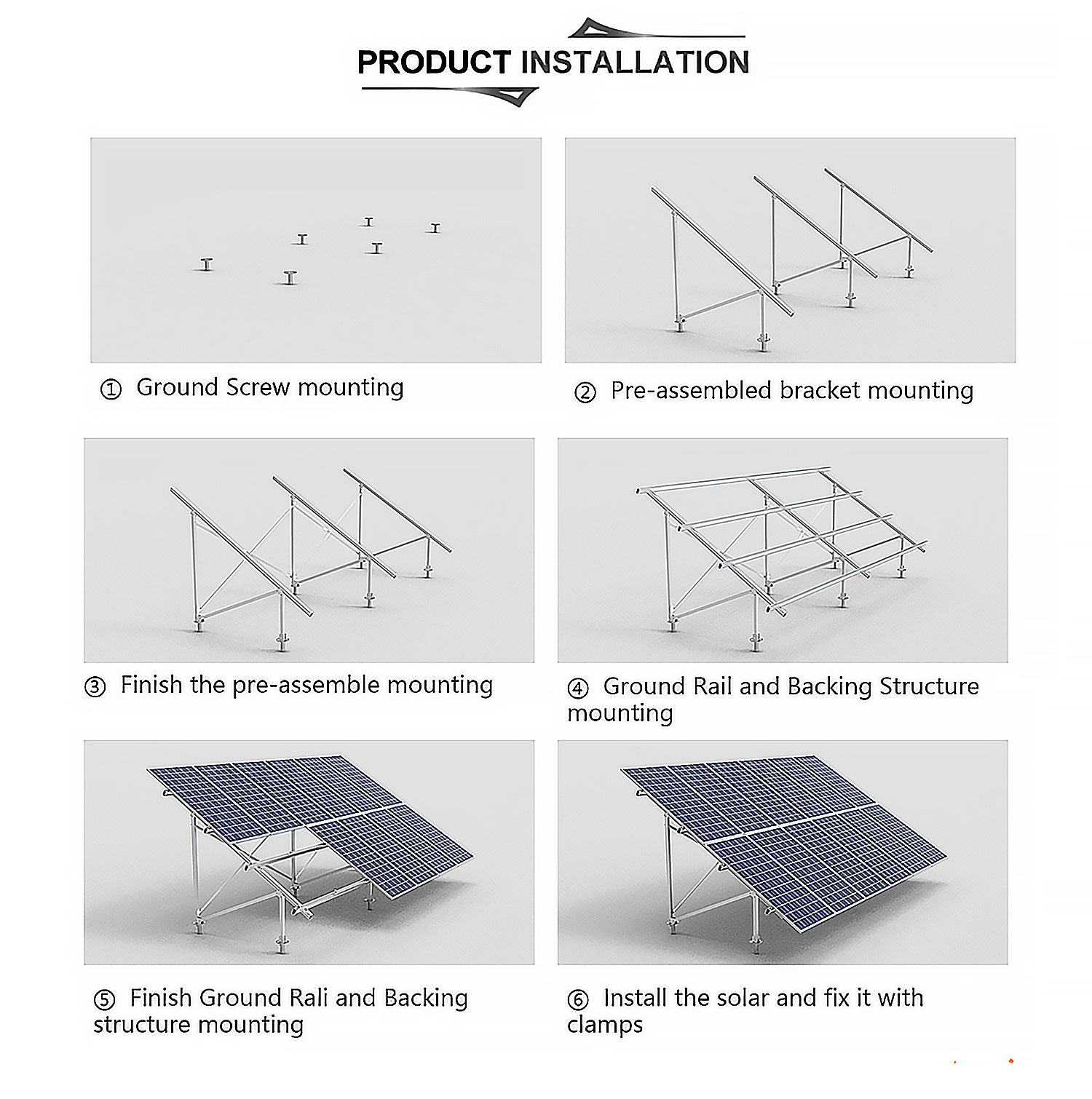 Ground mounts can be adapted to various terrains, including flat, sloped, or uneven ground. |