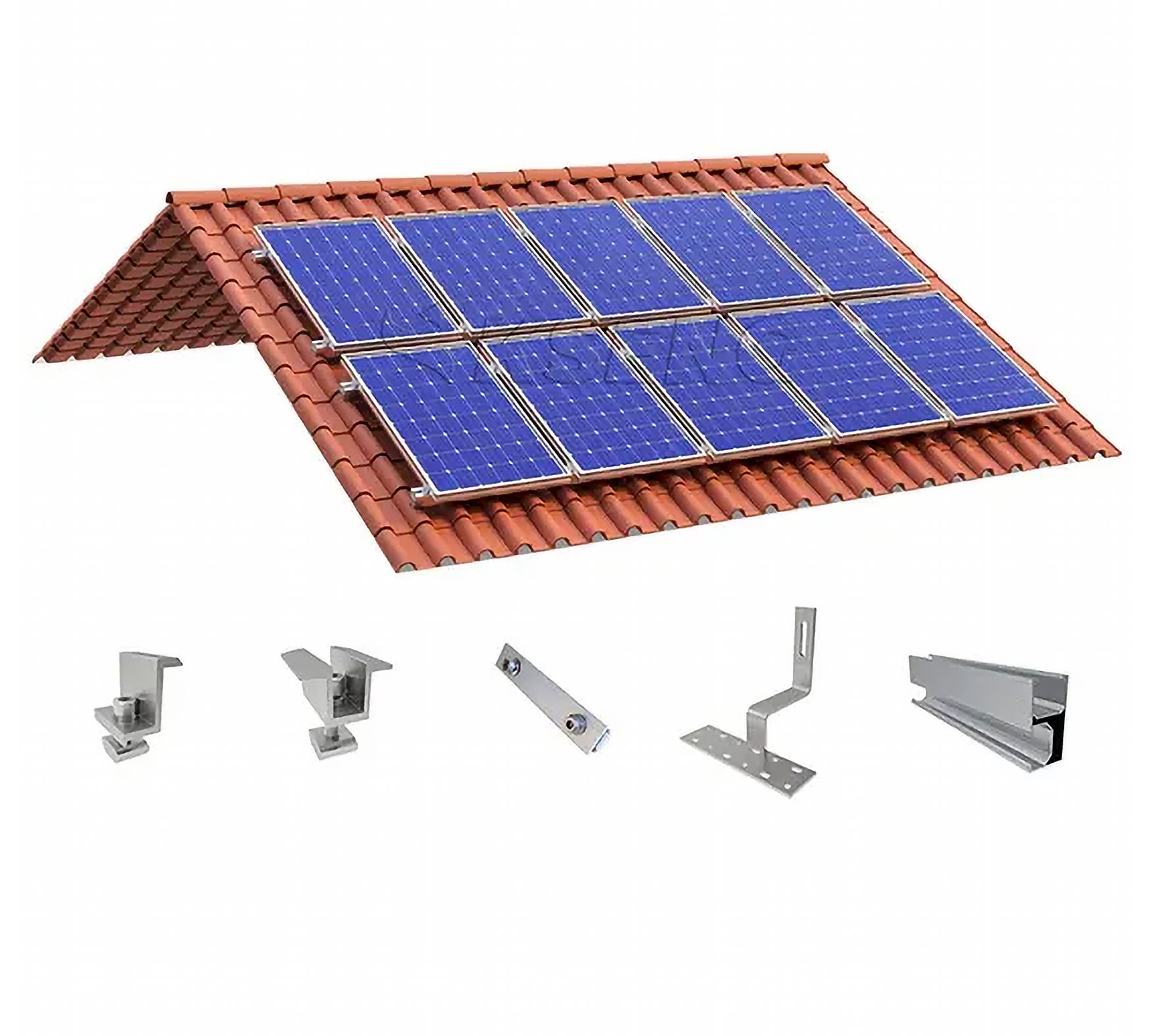 The mounting system components should be compatible with the roof material (e.g., tile, metal sheeting, slate) to ensure proper installation and long-term durability. |