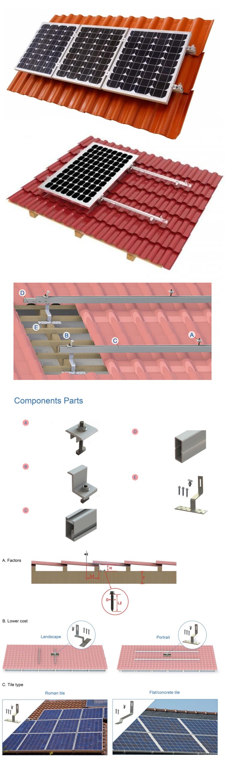 The mounting system components should be compatible with the roof material (e.g., tile, metal sheeting, slate) to ensure proper installation and long-term durability. |
