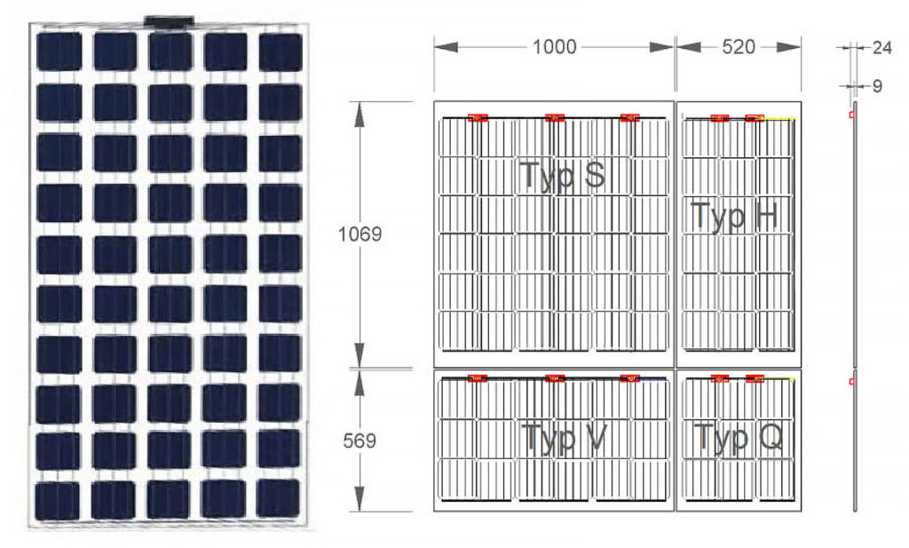 Examples of specifications for some types of Solar Panel Polycrystalline (BIPV) |