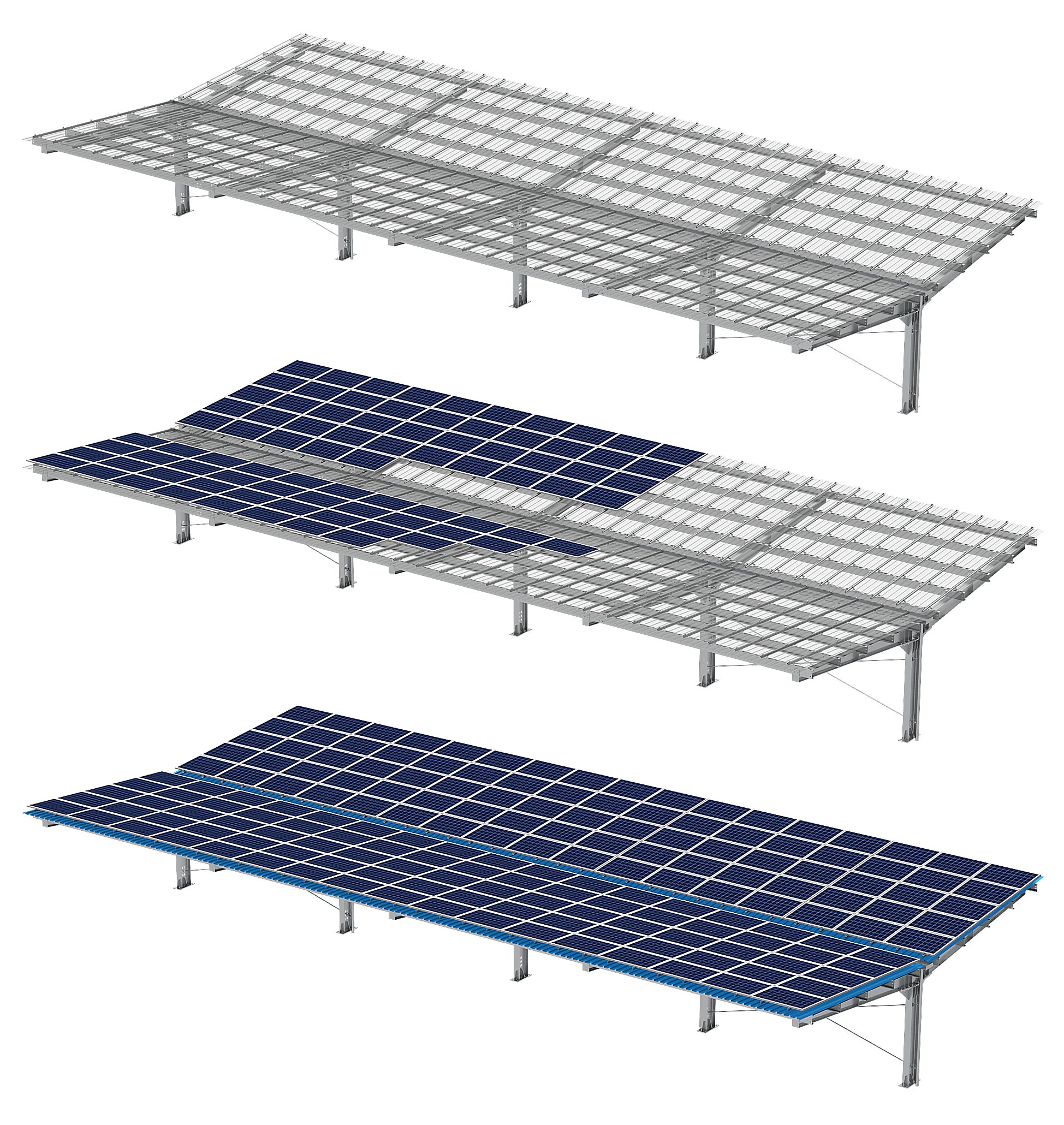 This is the framework that holds the solar panels. It can be made of various materials like aluminum or steel, with options for pre-engineered systems or custom-built solutions.