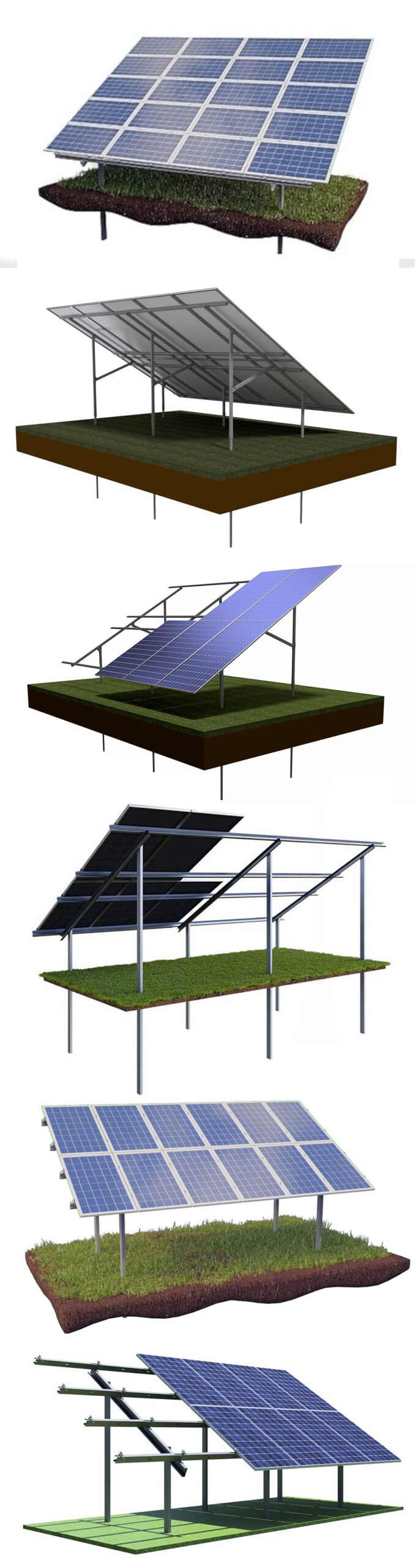 Ground mounts can be adapted to various terrains, including flat, sloped, or uneven ground.