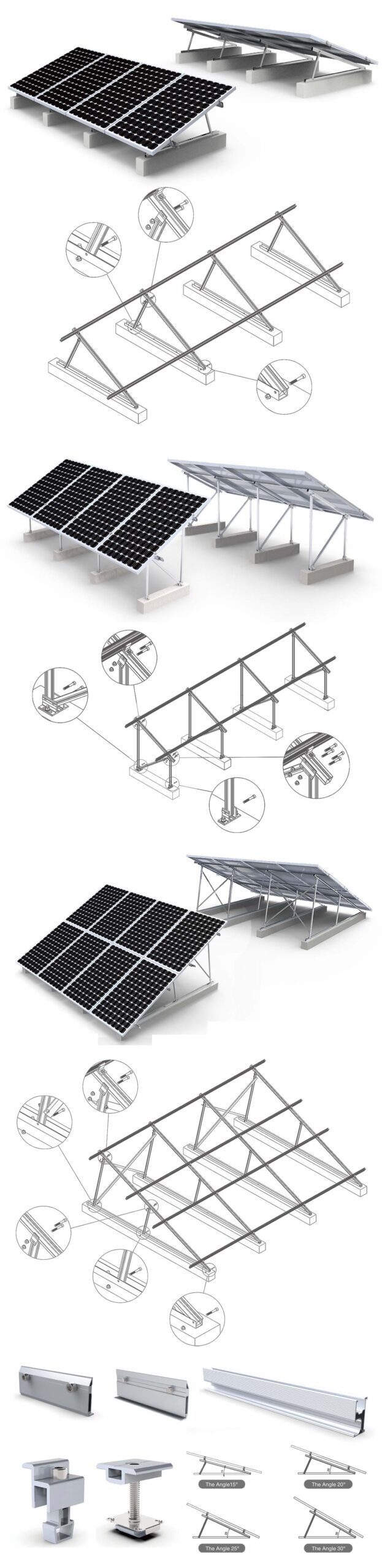 Systems can be designed for various tilt angles (e.g., 10-15°, 15-30°, or 30-60°) to optimize solar energy capture. They can also accommodate both landscape and portrait module orientations. |